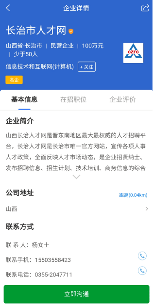 3、精準匹配推薦:根據求職者的個(gè)人信息和職業(yè)規劃,長(cháng)治人才網(wǎng)為企業(yè)推薦合適的候選人,提高招聘效率。