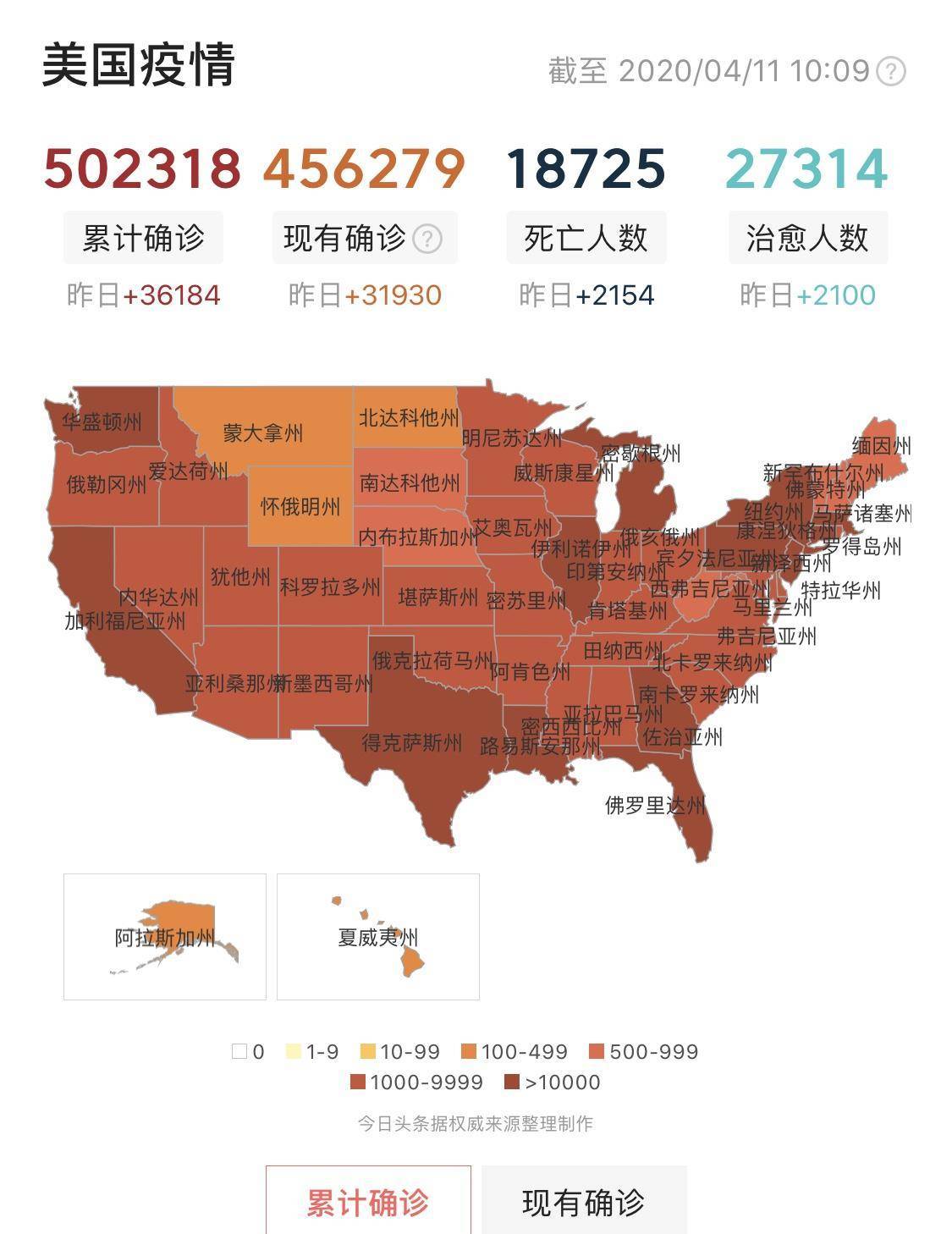 美國最新疫情確診數據更新